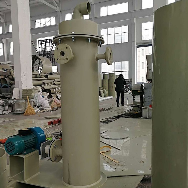 用鼓风脱气的方式除去水中游离五氧化碳,水自设备上部引入,经喷淋装置,流过填料层表面,空气自下部风口进入逆向穿过填料层。水中的游离二氧化碳迅速解析进入空气中,自顶部排出。在水处理工艺中一般设置在阳离子交换器和反渗透的后面,正常配制情况下,经除碳器脱气后,水中残留的二氧化碳不超过5mg/升