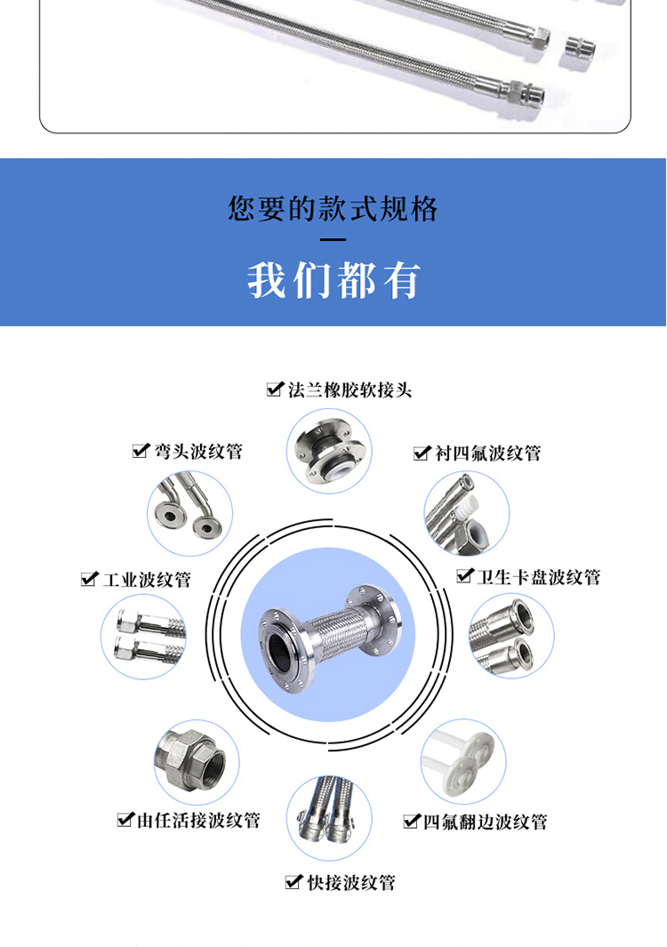 法兰式304不锈钢波纹管/工业金属软管钢丝编织耐高温高压蒸汽防爆 型号 | DN15-DN200 | ||