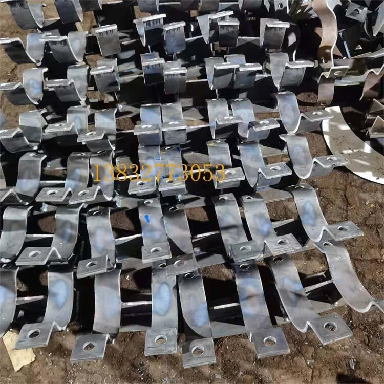 T型管托(焊接型):制作方法为一块底板 一块立板 在J1型的立板两侧分别焊接带胶皮管托两块加强筋 居中焊接 优势:制作简单 安装方便