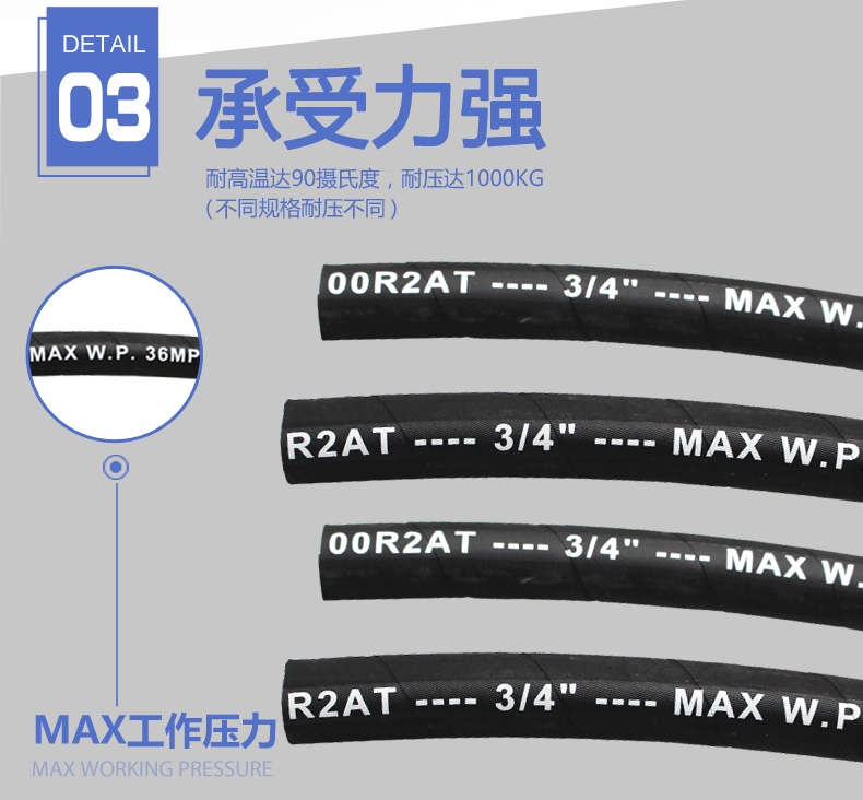 种类:4SP型—四层钢丝缠绕的中压胶管。