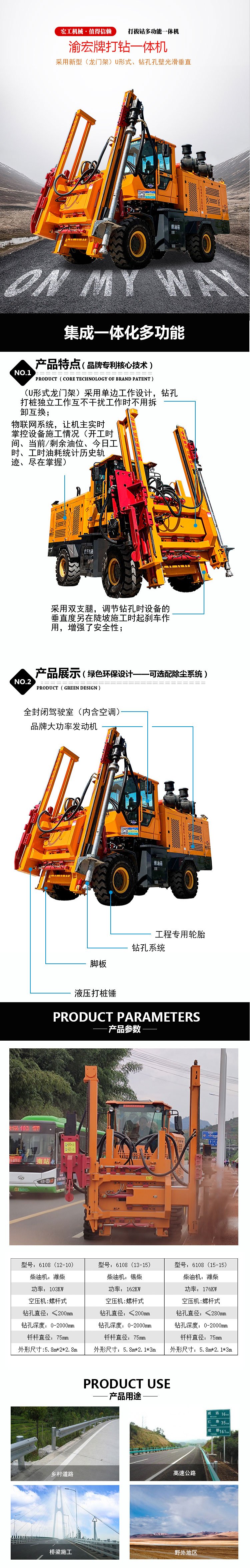 渝宏牌公路护栏打钻一体机/高速公路打钻机/打桩机/工程机械 品牌渝宏
