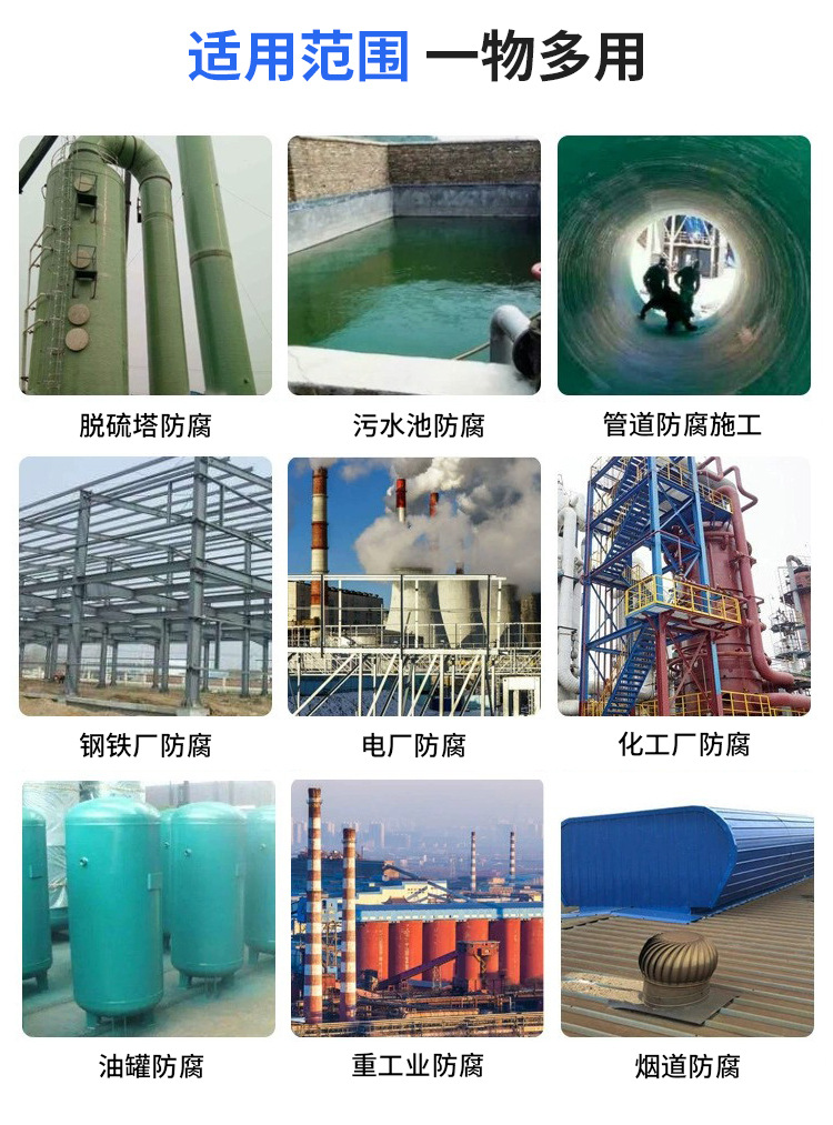 用途范围 | 烟囱冷水塔 水塔脱硫塔防腐 | ||