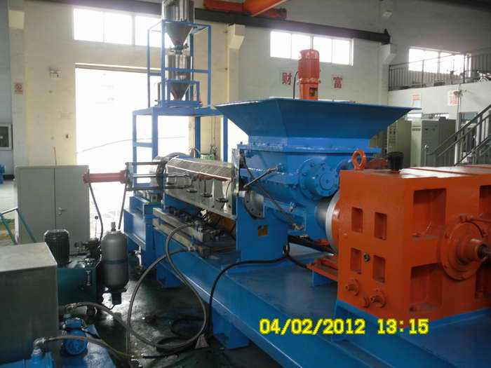 双腕喂料机:通过瓦片刀把物料切成小团状,然后自由落体掉入挤出机内,容易架桥。