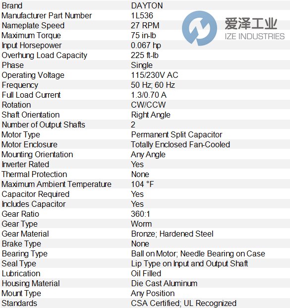 If you have any question for DAYTON?products, please feel free to dial 0086-21-3100 6702/?send request email to sales@ize-industries.com / browse our website:www.ize-industries.com.