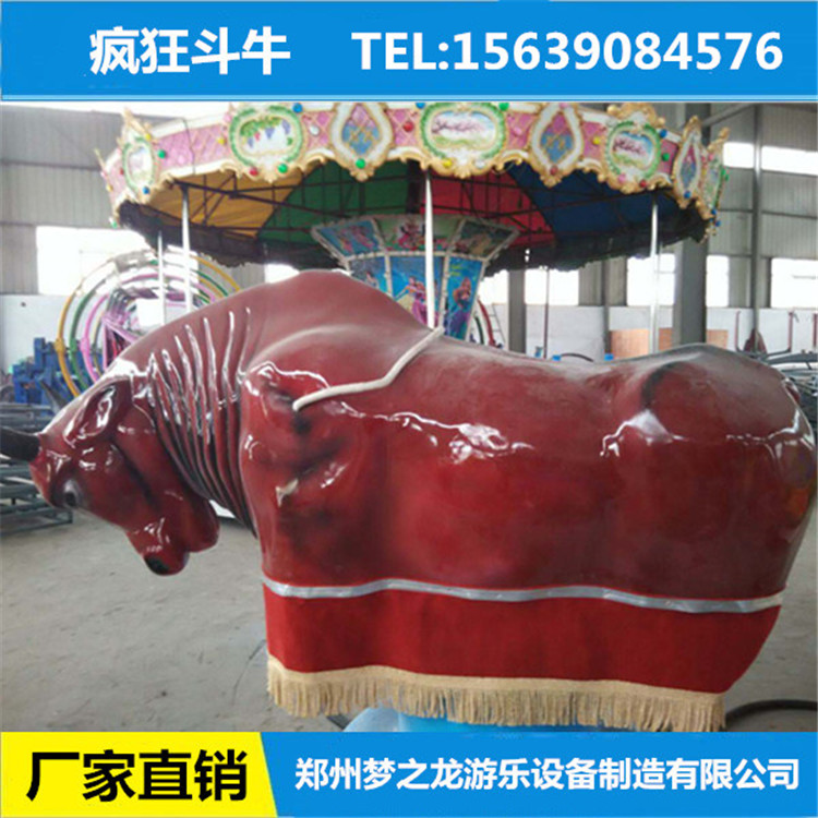 2、产品为一头仿真的机器牛,配有西班牙斗牛曲音乐洪亮,由电脑自动控制;疯狂斗牛机,斗牛机游乐设备,机械斗牛机。它是一款玻璃钢材质制作的仿真赛牛,可以发出逼真的牛叫声,并且进行上下窜动、左右甩动,直至让乘客从牛背上甩下来。仿真斗牛机设有安全充气气垫,乘客不会摔伤,可以全面保护乘客的身体健康。