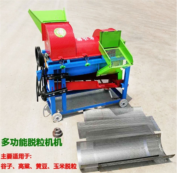 脱粒机,设计、结构紧凑、选用结构钢材。该机采用轴流式滚筒脱粒技术和可调风量清选技术,对谷粒、谷糠、谷秕、谷草的清选分离,具有分离清、损失小、脱净率高的优点,是科学院所研究实验谷子的理想机具,是农户脱粒的好帮手。