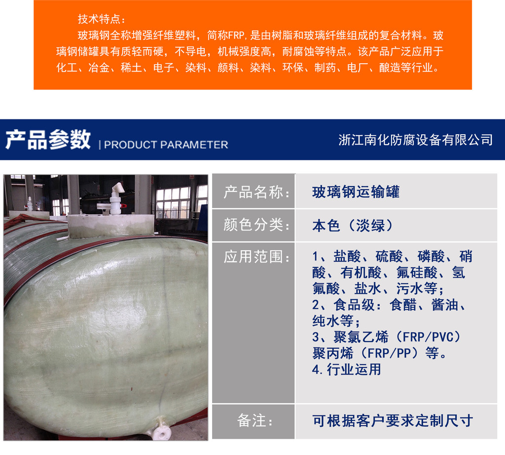 机电之家网厂家浙江南化防腐设备有限公司为您提供浙江南化 玻璃钢运输罐 玻璃钢罐车 车、槽罐/储罐一套式配备的详细产品价格、产品图片等产品介绍信息,您可以直接联系厂家获取浙江南化 玻璃钢运输罐 玻璃钢罐车 车、槽罐/储罐一套式配备的具体资料,联系时请说明是在机电之家网看到的。