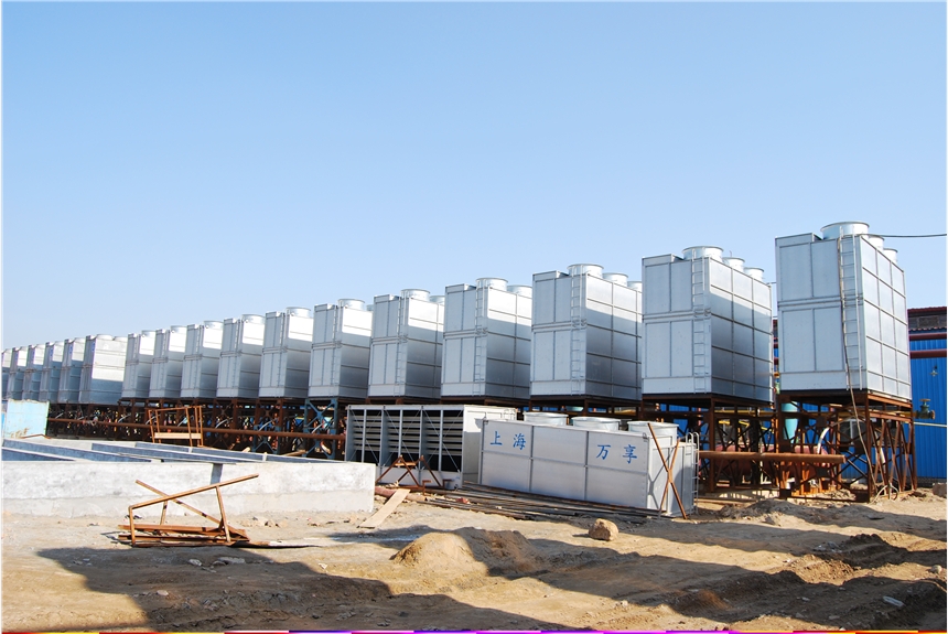 这种蒸发式凝汽器采用混流的方式,板片处喷淋水与风同向流动,促进了喷淋水与板片表面的接触,减少了干点,增强了换热。同时,下箱体中的填料对喷淋水进行二次冷却,提高了整个设备的排热能力。此外,上部和侧面同时进风,为空气与水的充分换热提供了良好的空间结构,冷却效果好。最后,板片换热器的所有面积都方便随时进行清洗和维护,是其他换热器所无法达到的。