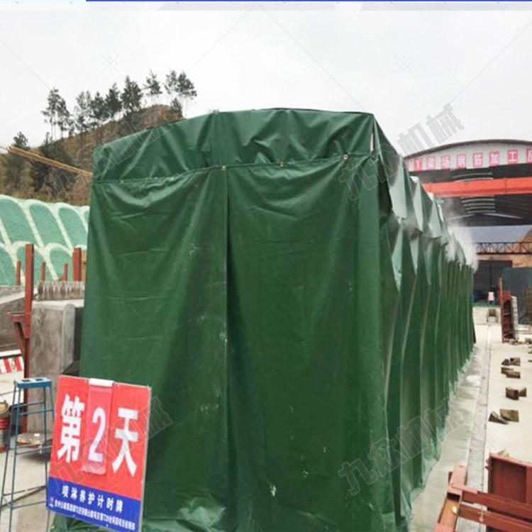 多功能整体移动式保温棚,包括若干桁架,每个桁架两端竖直设置有支架,相邻的支架之间设置有第yi支撑杆,所述第yi支撑杆一端与支架的一端转动连接,另一端与相邻的支架的另一端上下滑移并且可转动连接,每个支架下方均设置有滑动轮,并且在所述滑动轮上设置有使其固定的锁定机构,还包括与桁架、支架均可拆卸连接的养护罩,以及提供蒸汽的蒸汽机。现有技术相比,本实用新型的优点是:当不需要用蒸汽养护棚时,利用相邻支架之间的伸缩性将整个蒸汽养护棚压缩,节省空间,然后利用滑动轮将其转移至别处,直到需要再用到时直接将其拖出,然后将其拉伸开即可,省去了工人需再重新搭建的时间以及体力,提高了工作效率。