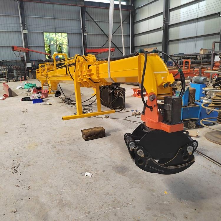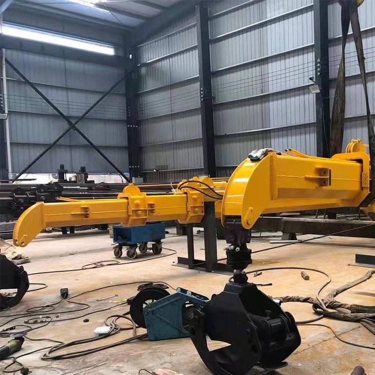 说具体点就是把伸缩臂伸出去,将远处的树木抓到挖机周边,或者直接装车。因为臂比较长,