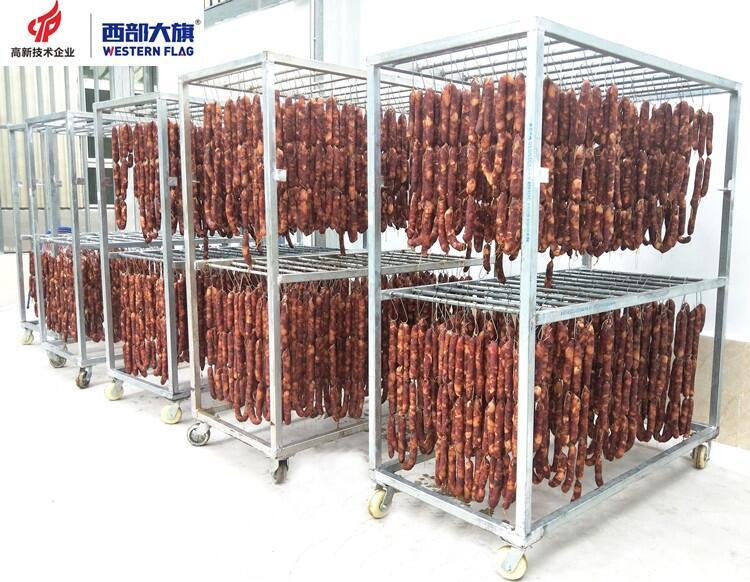 西部大旗腊肠冷风烘房使用的低温干燥方式接近自然干燥,烘干后的腊肠品质好,色泽好。干燥过程中不变形,不开裂,不变色,不变质,不氧化,干燥彻底,干燥后复水性好,营养成分损失少,储存期长,比其它传统干燥设备更有效地保护干燥物的色、香、味、个体形态和有效成分。