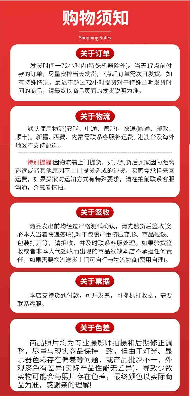 1. 开机前应用手转动运动件来检查有无卡、阻的现象,在运动件转动顺畅的情况下接好地线,然后通电进行空转,听机器有无发出异常响声,并查看运动件是否按箭头所指示的方向进行转动;