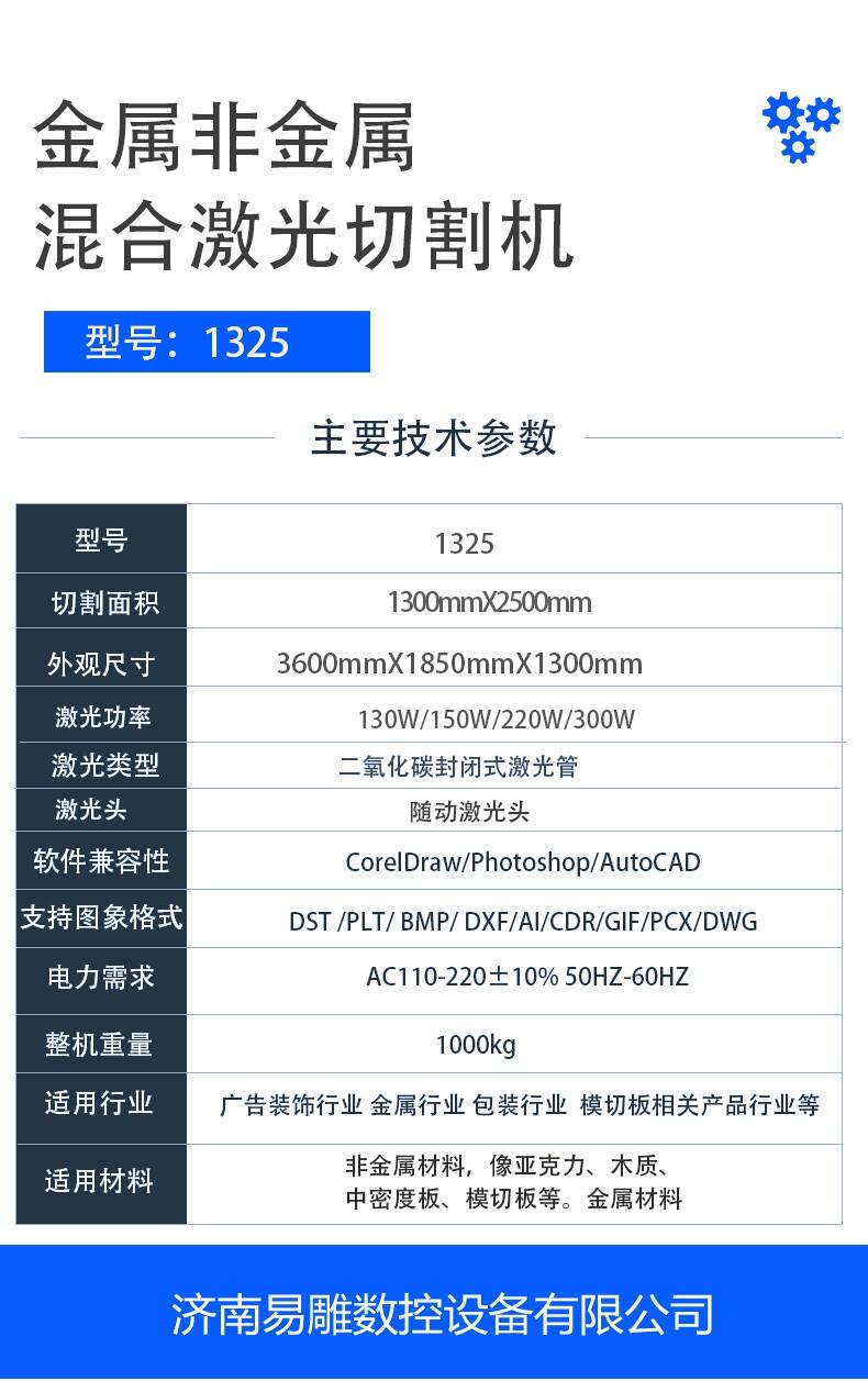 2mm不锈钢切割机易雕工厂直销1325型号激光混切机不锈钢碳钢亚克力木板切割机