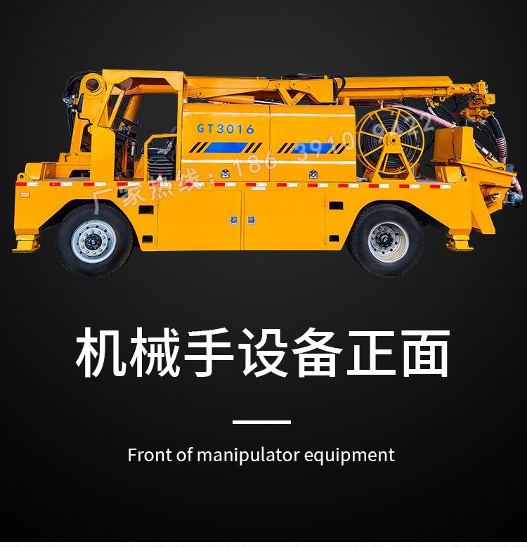 , 折叠式智能型机械手适用于长距离、大高度湿喷场地;折叠式内外双层可伸缩臂,大臂和小臂具有自动平行功能,保证准度;智能操作,准确性高,范围宽,盲区小;