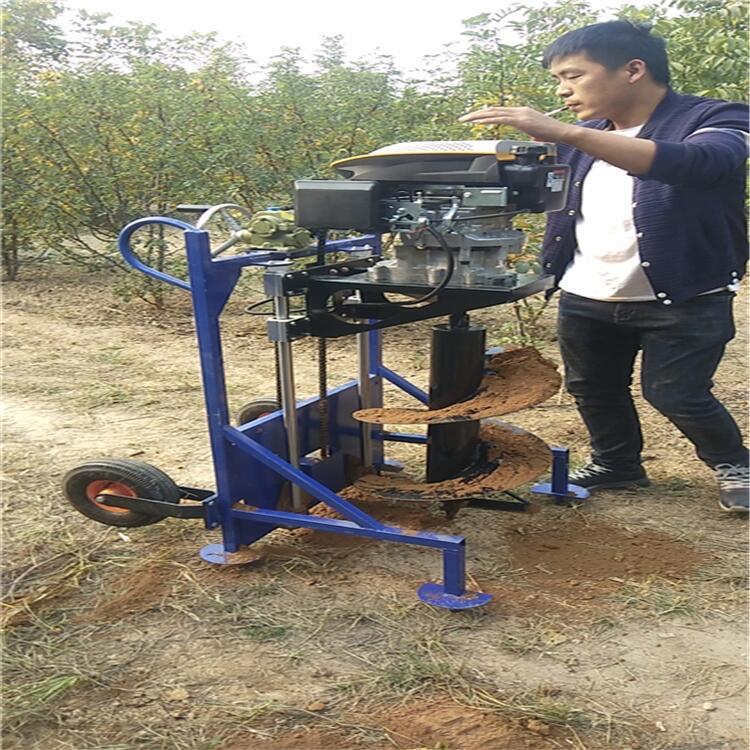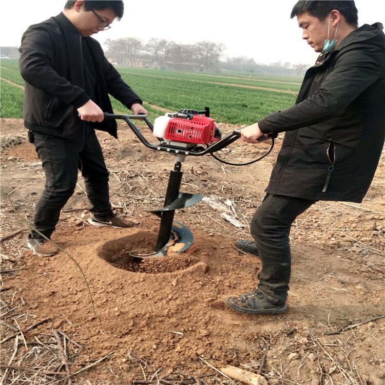 植树挖坑机是由扶着操作,不用机械带动,自配动力的钻坑机器。此款选用大马力汽油机为动力,带动螺旋式锰钢钻头,销土刀片进行切土,油门控制钻头转速,每40秒左右均可完成一个穴。速度快、效率高,是人工的30多倍。钻头由钻尖、刀片、导土片和钻杆组成。