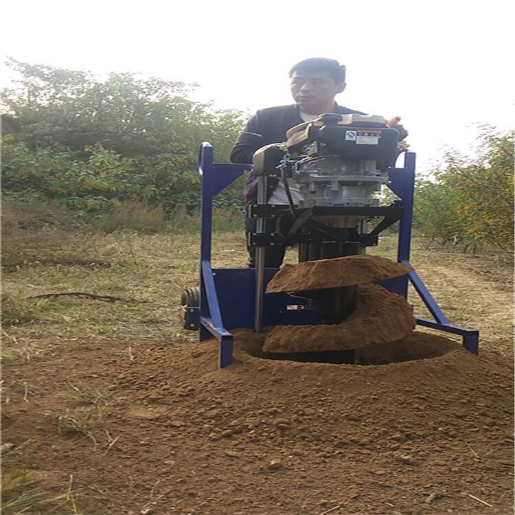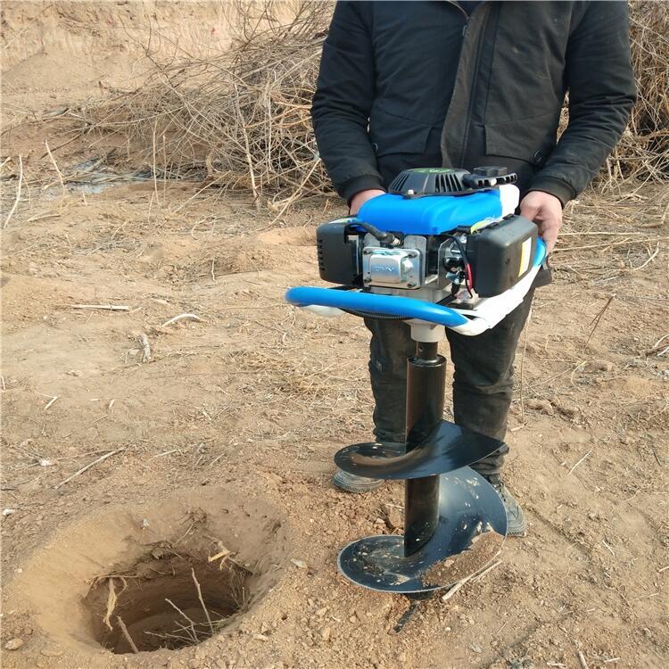 植树挖坑机是由扶着操作,不用机械带动,自配动力的钻坑机器。此款选用大马力汽油机为动力,带动螺旋式锰钢钻头,销土刀片进行切土,油门控制钻头转速,每40秒左右均可完成一个穴。速度快、效率高,是人工的30多倍。钻头由钻尖、刀片、导土片和钻杆组成。