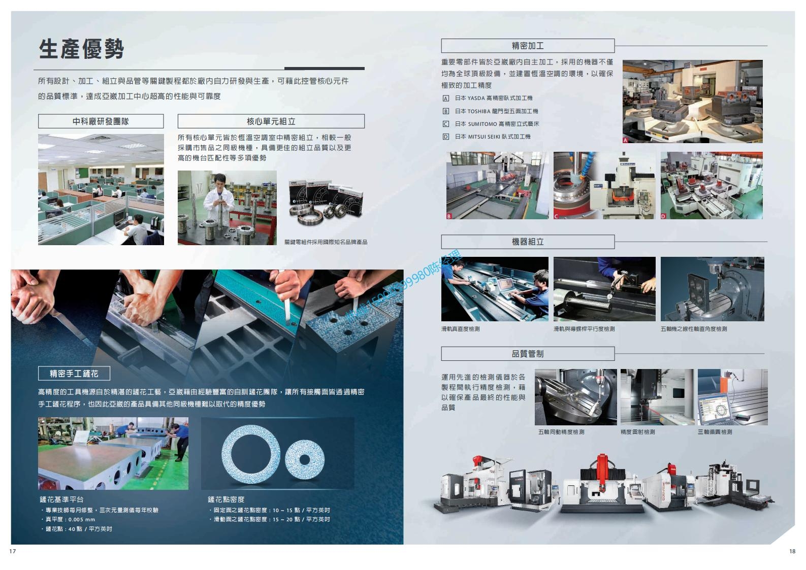 系列化之产品线,规格齐全。搭配高性能自制附加头模组与自动头库、立卧换刀系统,提供高附加价值大型工件之产出能力