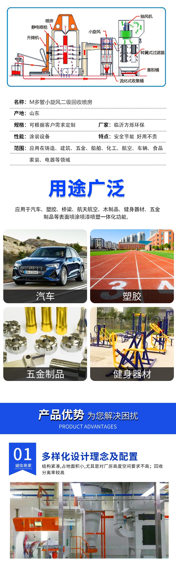 静电喷塑流水线全自动大旋风喷粉房回收悬挂链条高效率二级除尘器