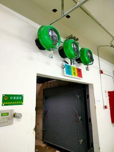 DJF-1电动脚踏两用风机是人防工事,防空地下室在战时电源被毁,敌方使用原子、化学或细菌武器的情况下,采用滤毒式通风设备。其技术指标的重点,是保证战时人力驱动情况下,满足400人单元的滤毒式通风要求,同时,考虑到平、战结合,可利用人力驱动电源为人防工事、地下旅馆、餐厅和商场等进行通风换气。