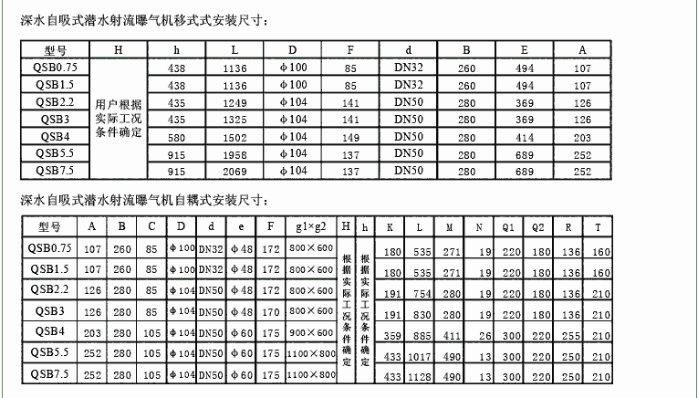 江苏杜安环保射流曝气机QSB7.5-100主要技术参数