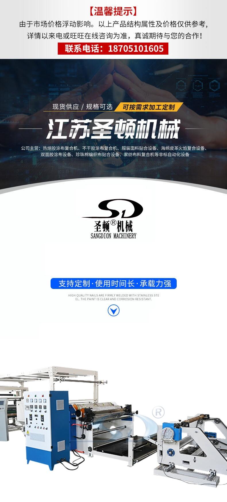 This machine uses hot melt glue to spray and adhere to the surface of the material. The two layers of materials are pressed and bonded by the rear pressure roller. Common bonding materials include pearl cotton, non-woven fabric, glass fiber cloth, woven cloth, lining cloth, lamb velvet, suede, leather, sponge, etc. Fastness is required for some materials.