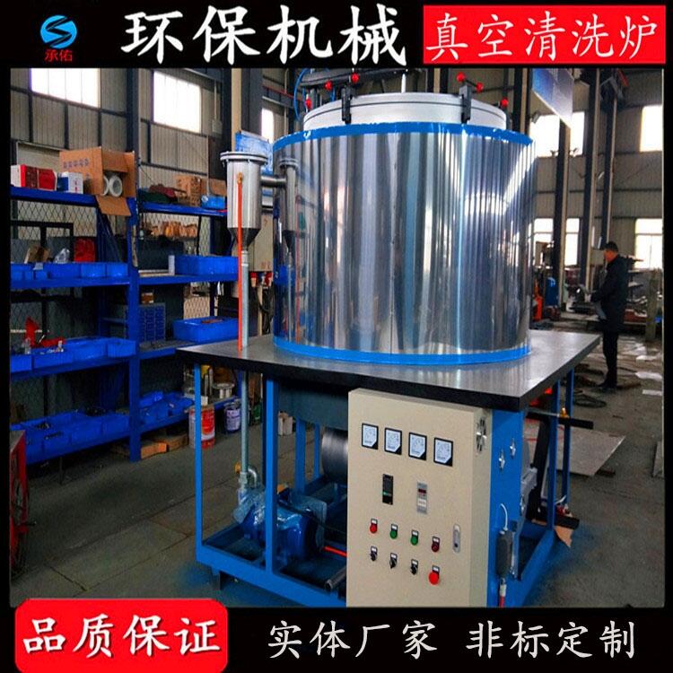 真空炉包括真空清洗炉体、炉盖及所带的废料收集系统、真空系统、密封系统、由微机控制工作的电加热系统、水冷却系统和清洗物装卸系统。