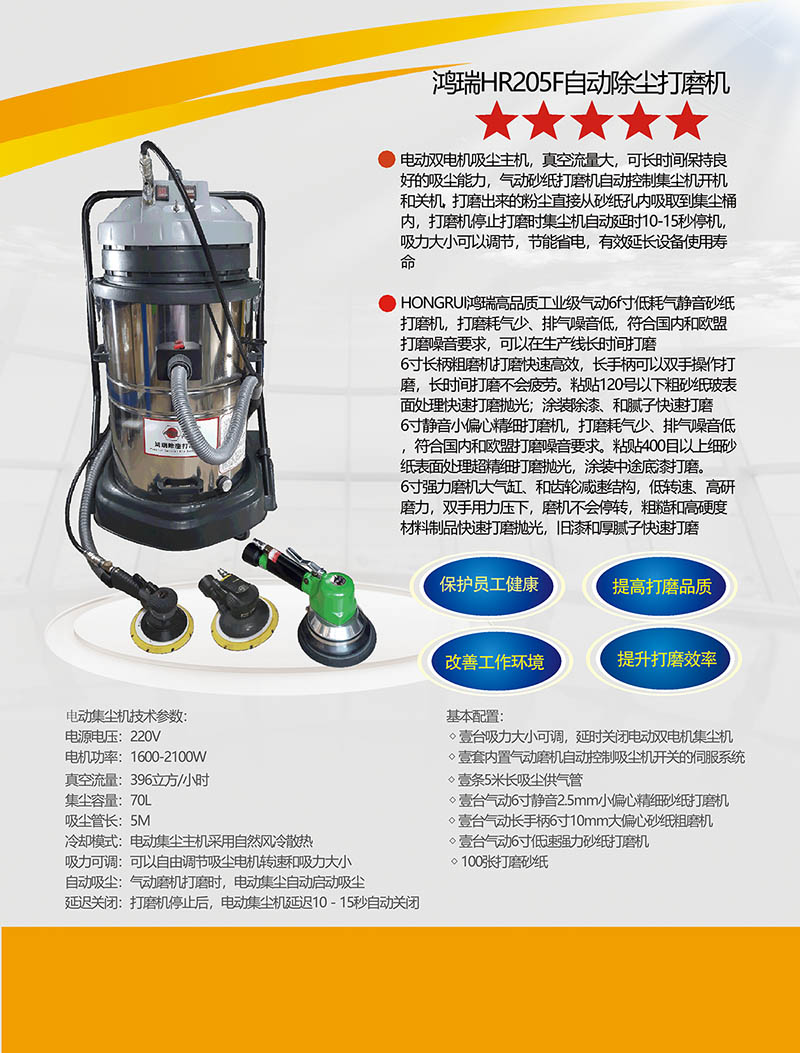 HONGRUI台湾鸿瑞HR205F型油漆翻新旧漆和腻子自动吸取粉尘打磨设备无粉尘打磨机自动清理粉尘打磨机