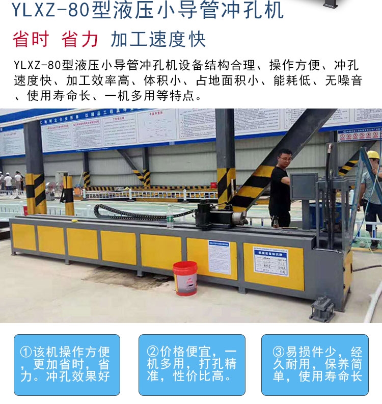 超前小导管冲孔机 注浆小导管冲眼机 小导管冲孔机图文介绍 本机可接连加工孔,并可贮存100个产品的加工参数。带生回想功用,具有记载查询及挑选功用 ,可挑选记载完毕直接加工 数控冲孔机的结构的结构特征:第五:超,该设备为双工位 在单位时刻内能够满意大数量的开孔要求,功率大大高于冲床。