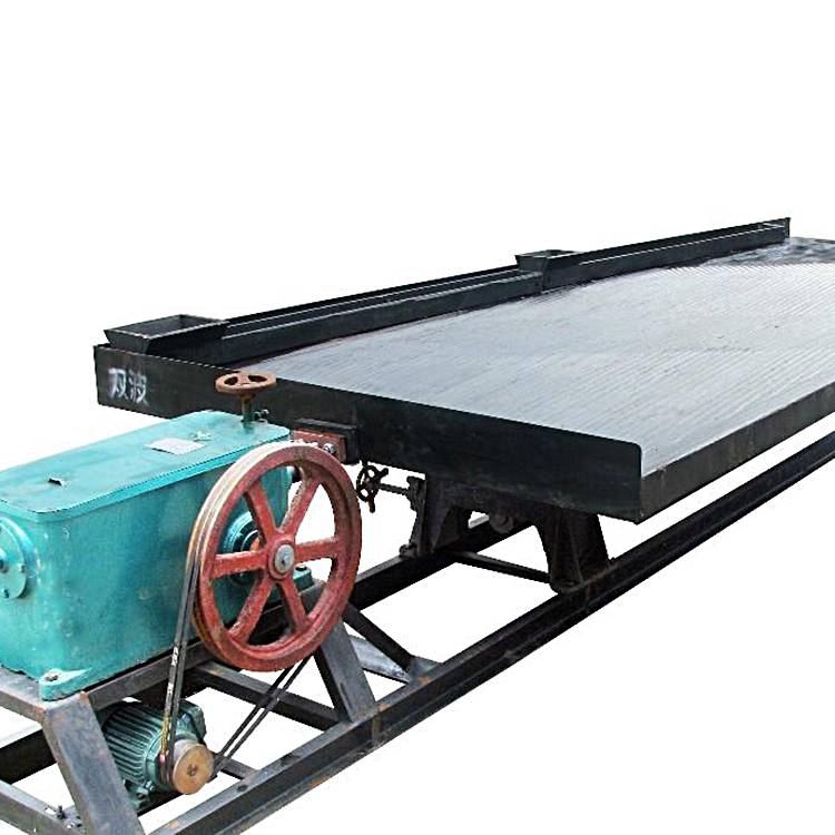 6-S摇床是重力选矿的主要设备之一,6s摇床广泛应用于选别钨、锡、钽、铌、金和其他稀有金属和贵金属矿。可用于粗选、精选、扫选等不同作业,选别粗砂 (2-0.5mm)、细砂(0.5-0.074mm)、矿泥(-0.074)等不同粒级。也可用于选别铁、锰矿石和煤。当处理钨、锡等矿石时,摇床的有效回收粒度范围为2-0.22毫米。