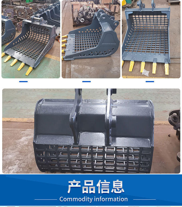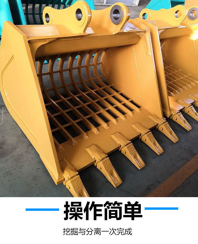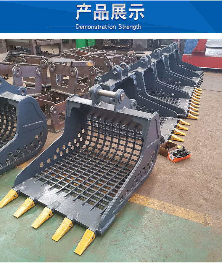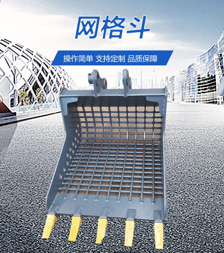 挖机栅格斗(网格斗)一般用于清理河渠、池塘里的污泥或垃圾。 水都从栅格中流走,污物都留在栅格斗里面,这样就很方便地将水与污物分离开来。