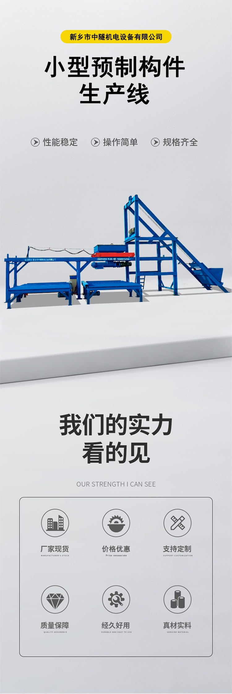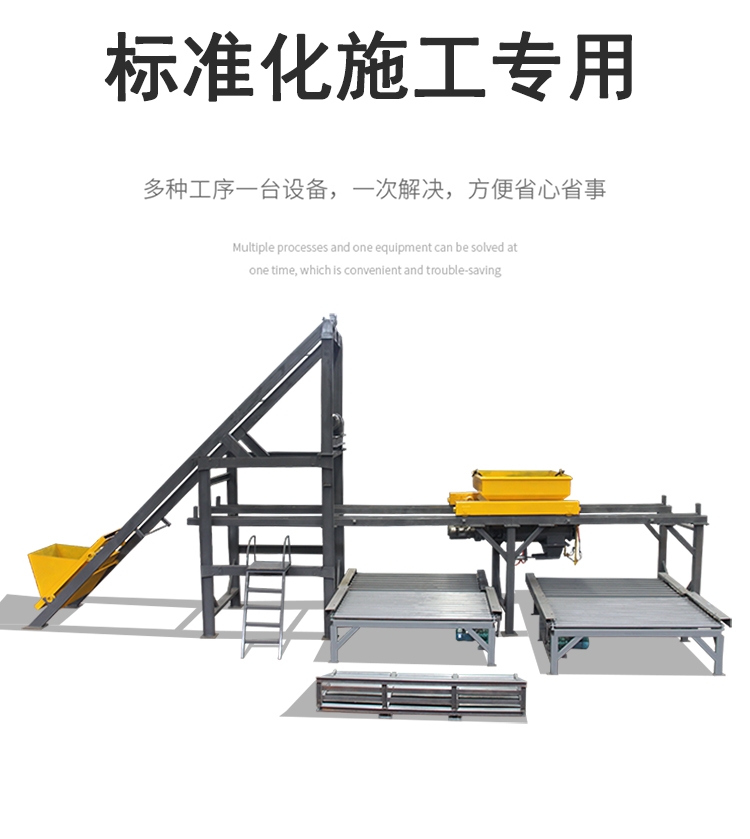 混凝土预制生产线设备优势 1、自动化运作、省50%人工、600%的生产效率; 2、拆卸组装快捷,运输方便,对作业场地要求很低,为就近 3、极大人工劳作强度,小预制厂工人从此不再劳累; 4、操作员无需培训,可靠,有效施现场人员的事故 小型预制构件布料机 路沿石预制生产线 预制块脱模机