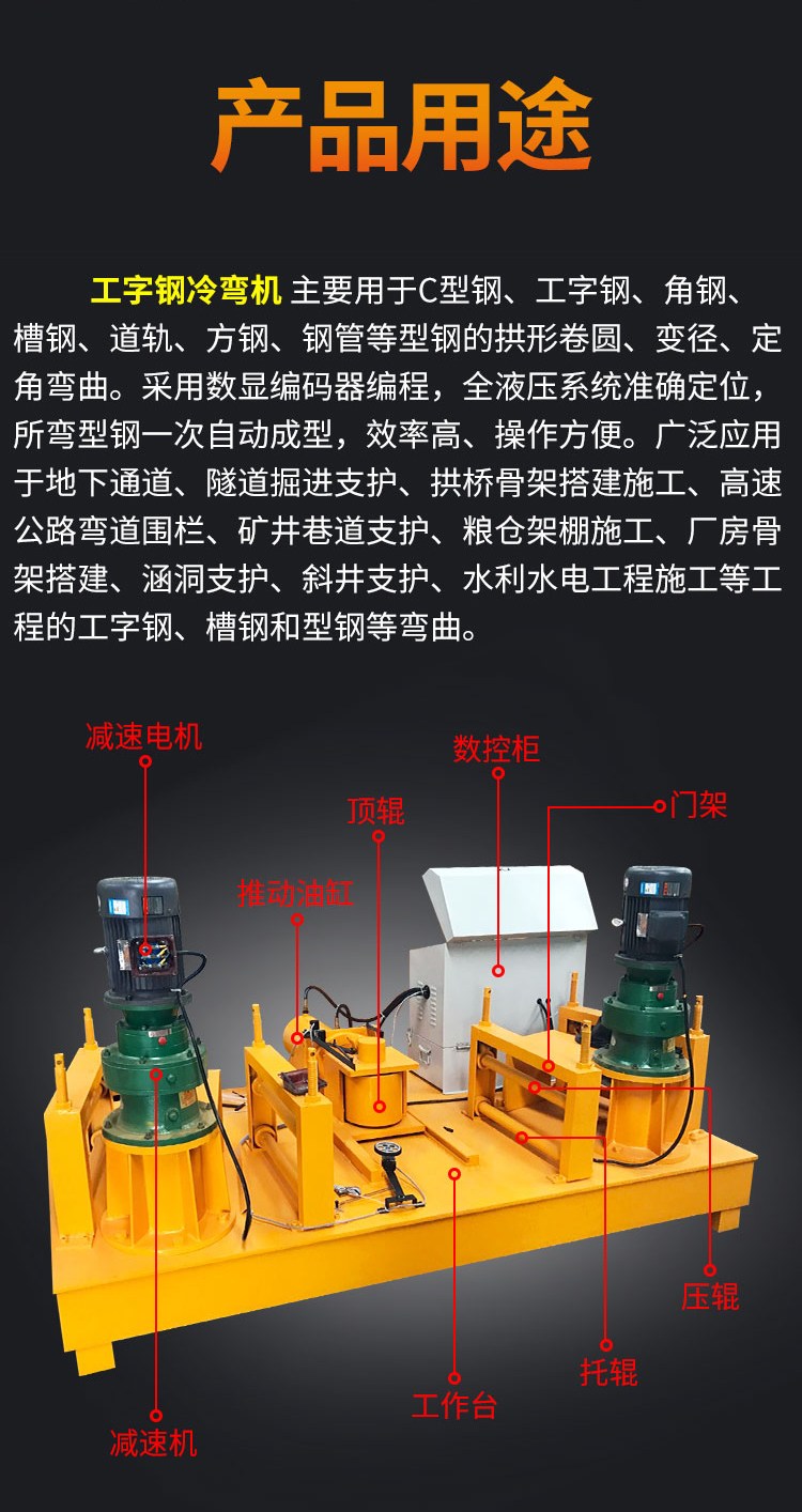 工字钢冷弯机厂家供应18号工字钢顶弯机 工字钢冷弯机, 实际上它是能接受地层荷载和路面暂时荷载(动荷载)的一种地基梁(板)。为此仰拱的受力状况比较。从国表里的交通工程病害的实例来看,因为仰拱结构的规划、施工原因,而呈现结构失稳,路面沉降开裂,翻浆冒泥病害的实例不在少数。为此在施做仰拱结构时有必要精密,其结构物必定要契合和规划要求。