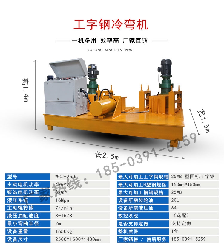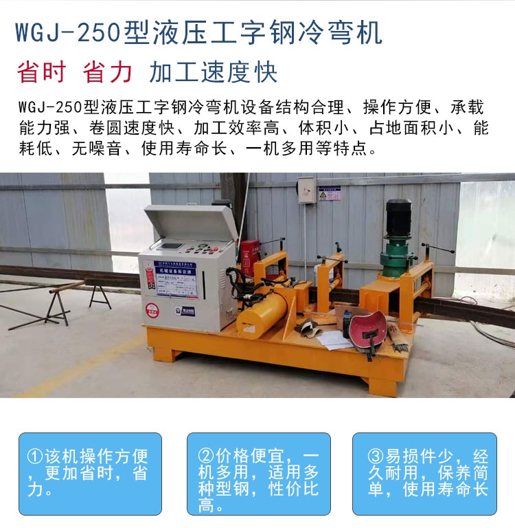 工字钢顶弯机 25号工字钢冷弯机 H型钢冷弯机, 新一代WGJ-250工字钢冷弯机是豫龙工程机械设备有限公司集20年功力生产的一款度,高耐久性,高性,率的钢拱架加工设备,比上一代加大了油缸,采用了更先进的操作,德国进口全铜电机以及加粗加大顶辊,制作的钢拱架同意,精度高,成型好,经实验研究,了15%的产能,且了30%能耗,为企业提供了更多的经济价值,不论,矿山还是桥梁涵洞等行业都离不开槽钢冷弯机,而豫龙这款工字钢冷弯机从定价到都居行业内首位,并且定制,创新是豫龙一如既往的态度,豫龙以客户需求为准则不断精益求精。欢迎各新老客户前来订购,只需2W,新款工字钢冷弯机就带走。