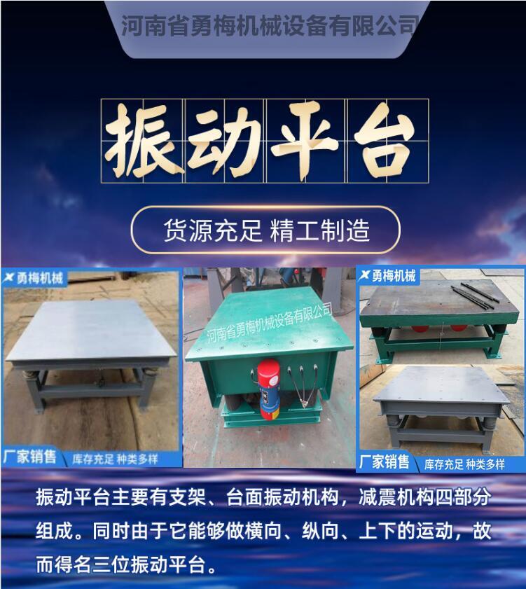 浇注振动平台振动平台通过更换砖机模具便可以生产,标砖、砌块砖、多孔砖、盲道砖、植草砖、广场砖、马路花砖、护坡砖、路面砖、路沿石砖、水泥垫块砖、面包砖、隔音砖、警井砖、检查井模块等等。可定做各种砖机模具,只需提供砖型和具体尺寸即可定做。河南勇梅机械在使用过程中,可以通过调节振动电机激振力大小,来使平台上物料实现理想的形式。振动平台分为上下振动、螺旋振动和三维振动三种振动方式。 内蒙古自治区,简称“内蒙古”,呼和浩特;地处中国北部,东北部与黑龙江、吉林、辽宁、河北交界,南部与山西、陕西、宁夏相邻,西南部与甘肃毗连,北部与俄罗斯、蒙古接壤 [1-2];地势由东北向西南斜伸,呈狭长形,气候以温带大陆性气候为主