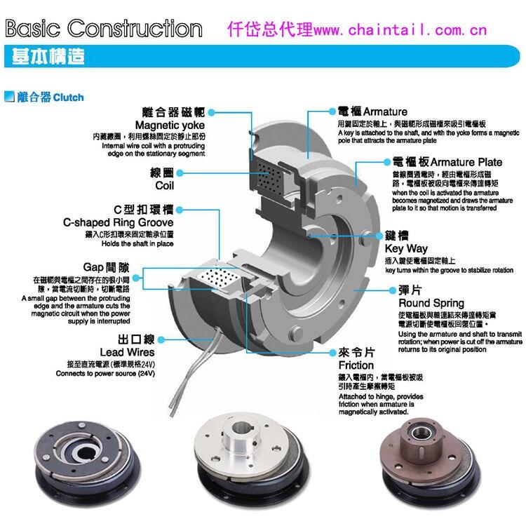 电磁离合器CDF005AE是一款5公斤规格电磁离合器,由台湾仟岱有限公司生产,动扭力40NM,静摩擦扭力45NM,安装孔径为30MM,键宽8MM,工作电压DC24V,功率25W,用于产品动力连接与切离。