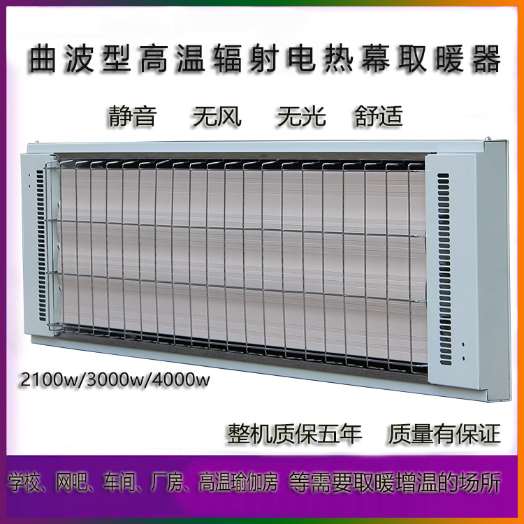 辐射式采暖,节能,辐射面积大,热量大升温速度快,使用方便,取暖效果理想。 外表美观,设计合理,易于安装。电热幕采用自动温度控制装置,可分户,分室独立调节,并保持室内温度恒温。