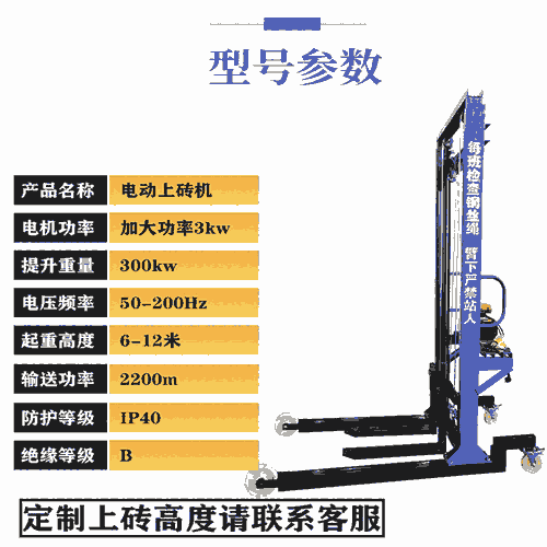 工地电动上砖机广泛应用与建筑工地、砖厂、建材、冶金等行业,特别针对红砖、水泥砖、加气块、蒸汽砖、碳素块等的搬运和转运工作。解决上