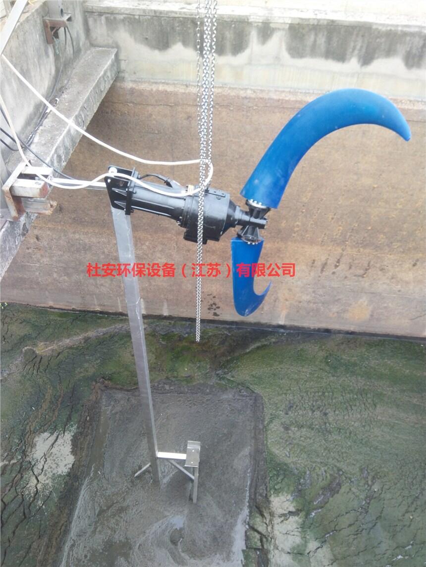 杜安环保QJB低速推流器适用于各种水处理工艺和工业进程需要保持固、液二相或固、液、气三相介质均匀混合反应的场所。主要由潜水电机、减速机、螺旋推进叶轮、密封、手摇卷扬机构、安装系统和电气控制装置等配套组成