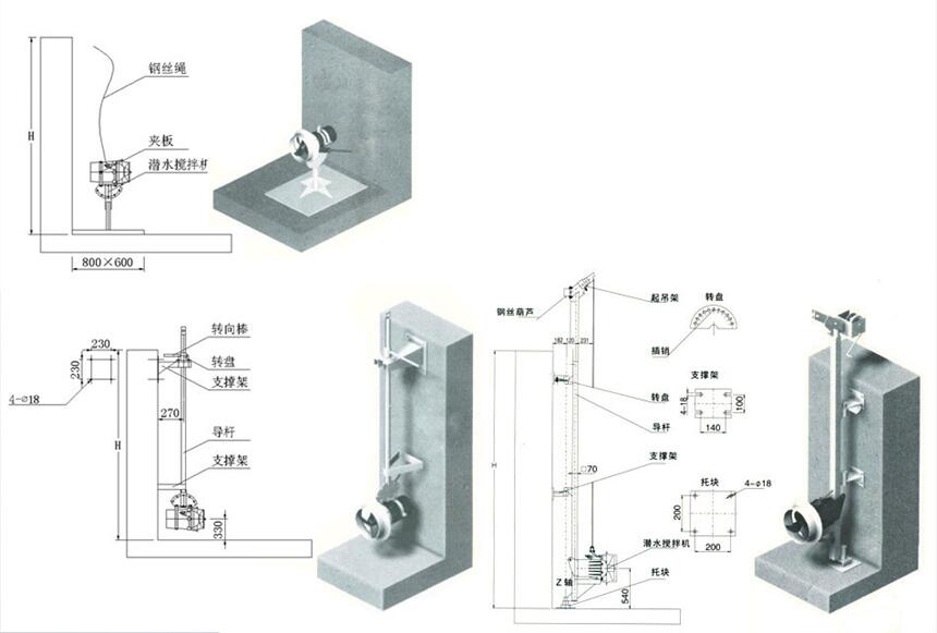 ③每一台搅拌器安装在一只固定式的构筑物当中,搅拌机应能通过导向装置降至构筑物当中就位;