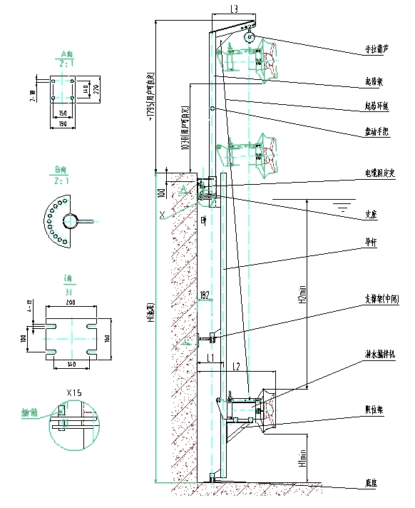 5、为便于检修搅拌机,需安装提升系统,包括导轨、提升索、水上提升支架和电缆固