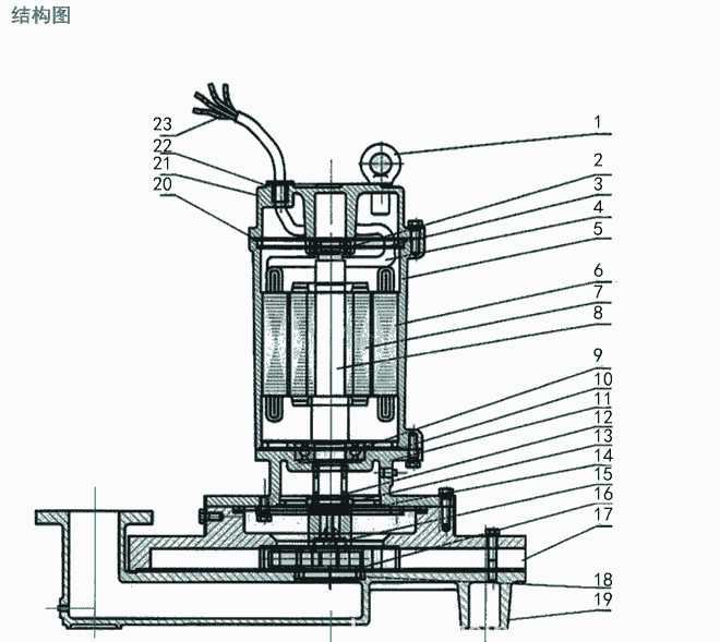 1 潜水离心式曝气机由潜水电机、进气管、混合室和曝气盘等组成。