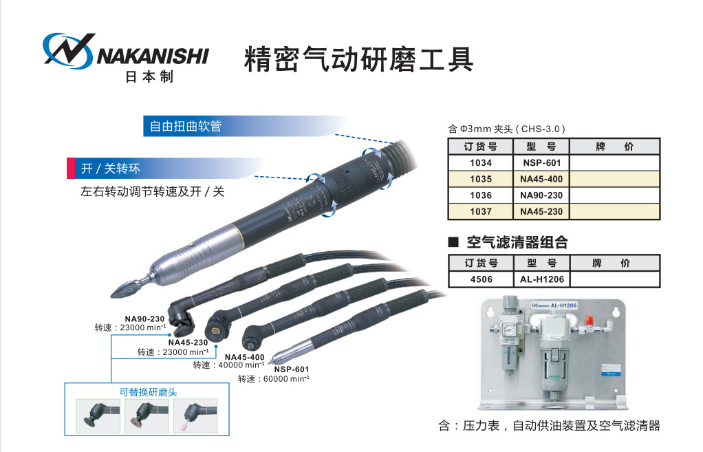 中西NAKANISHI 超高速气动打磨机 NA45-400 手持式雕刻机 抛光机现货