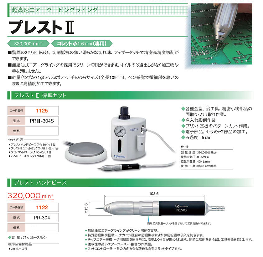 日本NAKANISHI 中西气动超高速研磨雕刻笔 PR2-304S