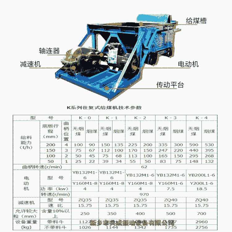 共成K3给煤机 往复式给料机根据给料量的大小可分:K1给煤机、K2给煤机、K3给煤机、K4给煤机等几种型号带。K型往复式给料机适用于矿山、矿井、选煤厂、中转站、输煤车间、港口散料码头等散料转运,可将散料经料仓或直接进行均匀的转载到胶带机或其它筛选设备,