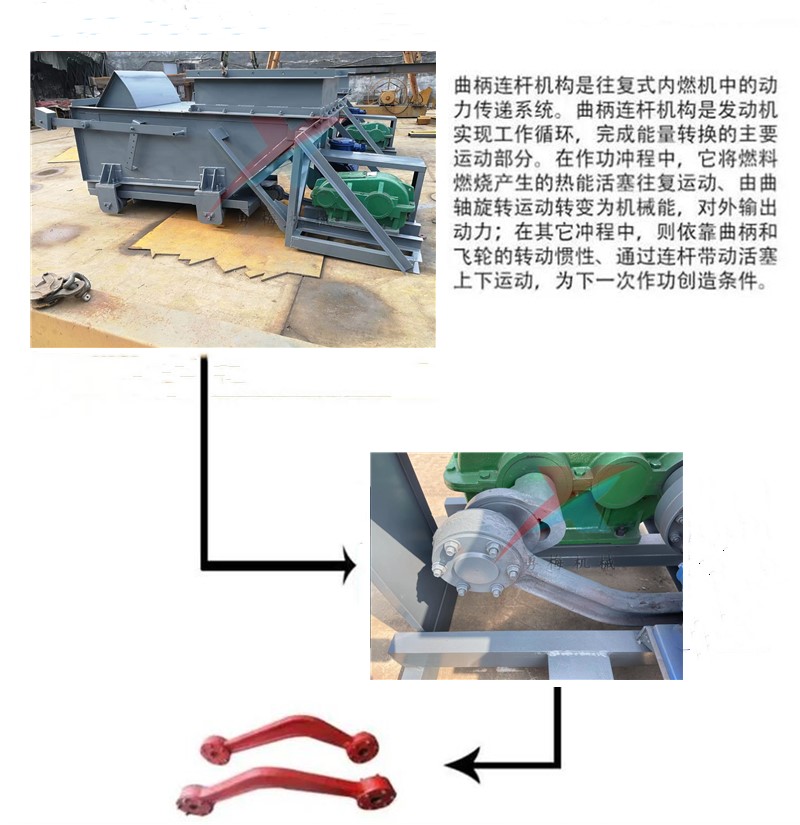 给煤机曲柄连杆装置是由曲柄连杆+曲柄毂+曲柄组成的,曲柄毂又叫曲柄壳,曲柄就叫偏心轮曲柄连杆是K型往复式给煤机的主要配件之一,给煤机连杆是往复式给煤机的重要组成部分,它属于往复式给煤机的曲柄连杆装置,这个装置包括曲柄,连杆和轴架。曲柄连杆装置是往复式给煤机的动力传递系统,通过这个装置,给煤机能够实现连续均匀的给料。