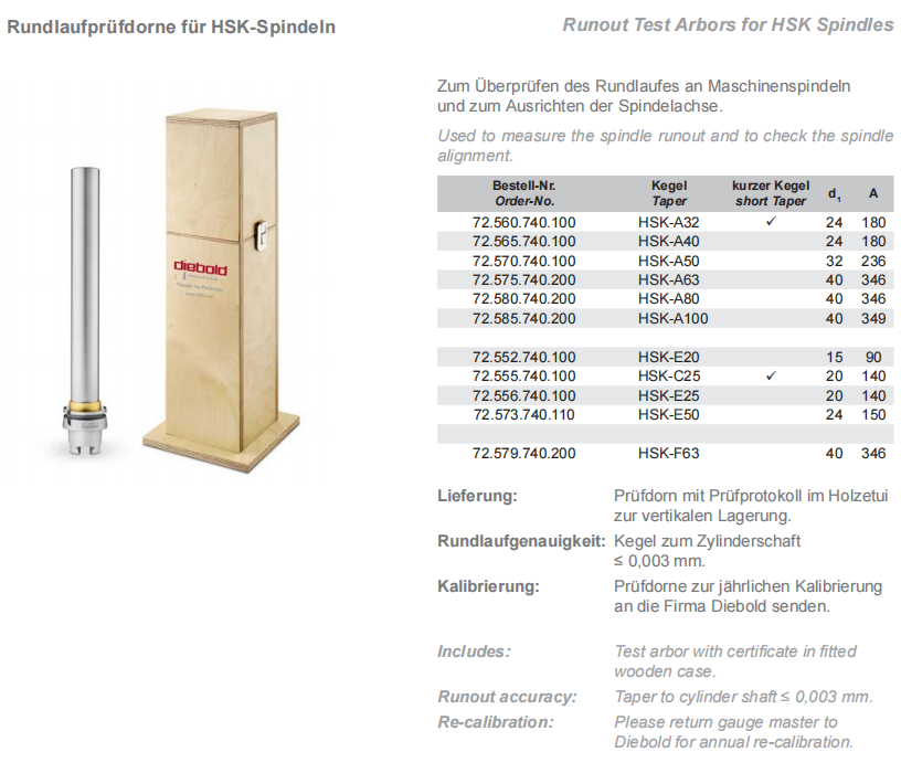 德国Diebold HSKC25 戴博检棒五轴机床检测棒 主轴跳动检测棒现货