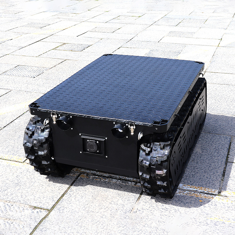多功能自走式橡胶履带电动机器人智能移动全地形底盘式阿凡达智能机器人陆地底盘作为多功能平台,AFD-17E履带机器人底盘,具有大载重和大平台,主要用于货物装卸。底盘整体履带结构采用平行四边形设计,离地间隙高,跨越能力强,履带接地面积长,梯能力优异,户外越野能力强。履带前后均可以把车体包裹,更有利于保护车体不受损坏,并可以行走在各种地形。AFD-17E底盘,具有大载重和大平台,主要用于货物装卸。
