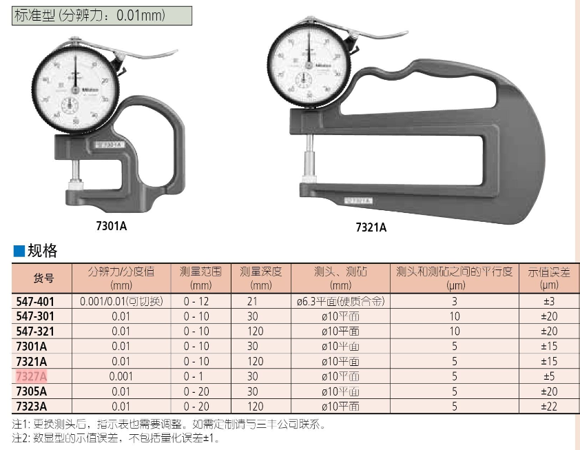 日本Mitutoyo三丰三丰 7327A测厚规厚度计 0-1*0.001手持式厚度表