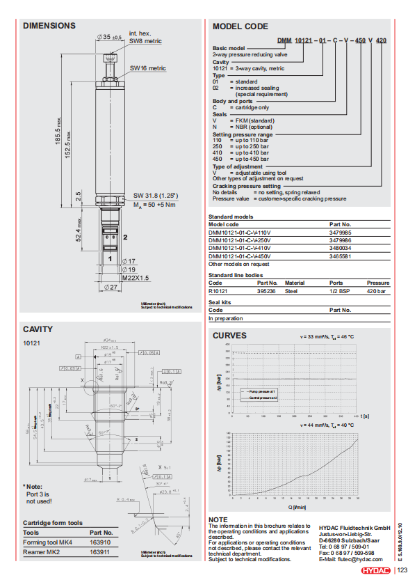 成都牧赫液压技术有限公司现货供应德国贺德克HYDAC压力补偿器DMM10121-01-C-V-250C 3479986