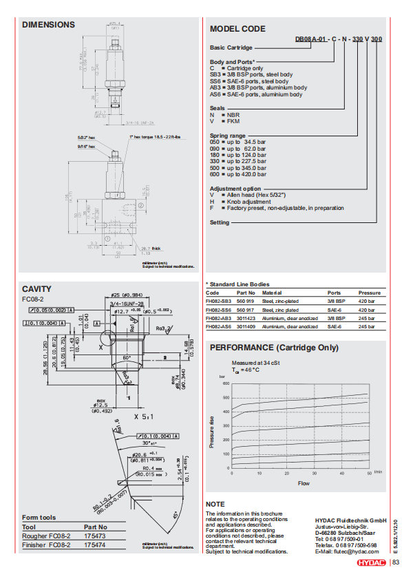 成都牧赫液压技术有限公司供应德国贺德克HYDAC溢流阀DB08A-01-C-N-330V